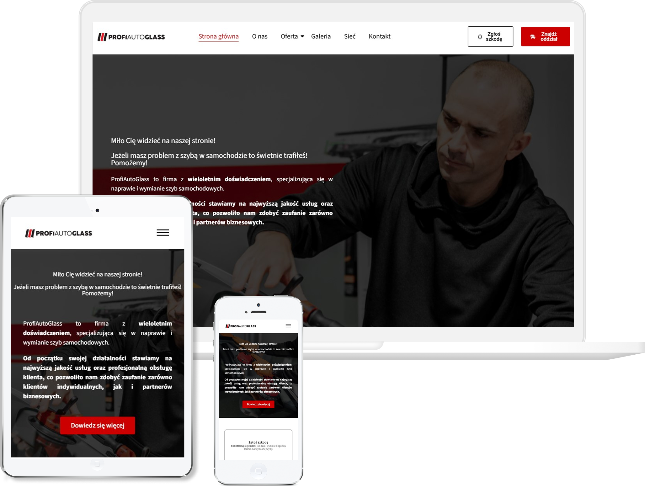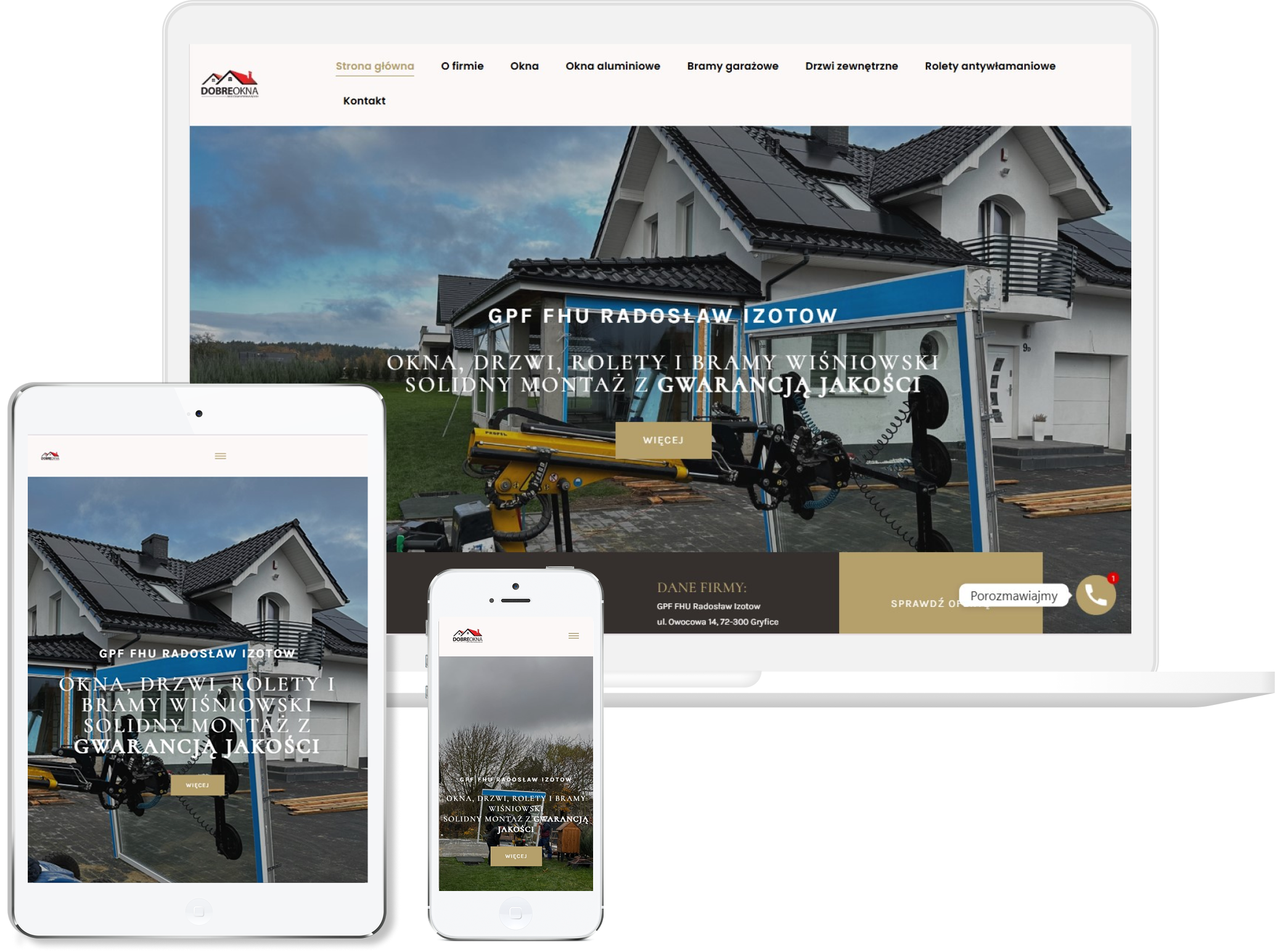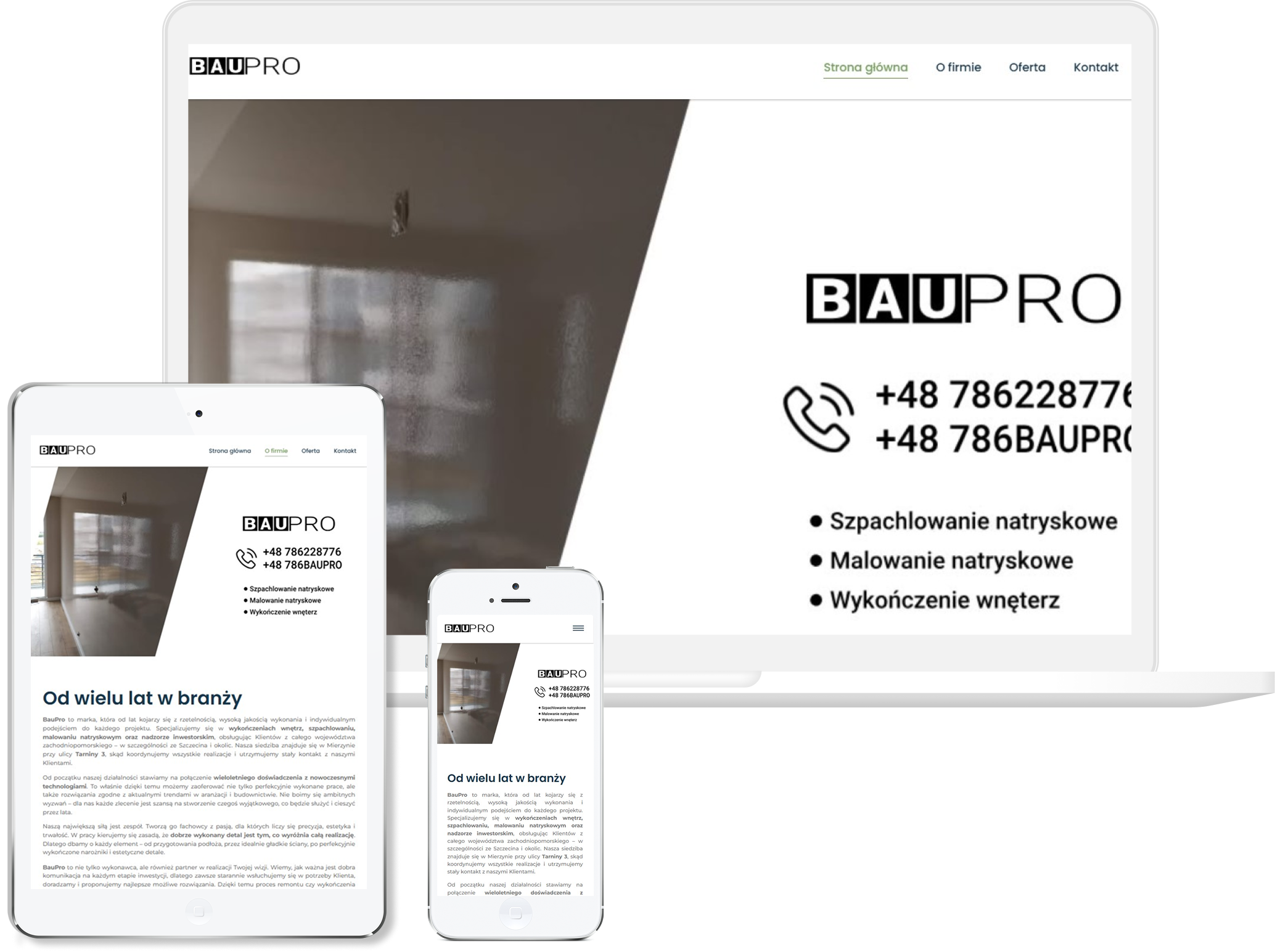Duży nacisk położyliśmy na prezentację realizacji, bo to właśnie zdjęcia najlepiej pokazują skuteczność wykonywanych prac. Stronę dopracowaliśmy pod kątem mobilnym, żeby była wygodna dla klientów przeglądających ją na telefonie między obowiązkami. Efekt końcowy to przejrzysta i funkcjonalna witryna, która buduje zaufanie i podkreśla profesjonalizm firmy od pierwszego kontaktu.