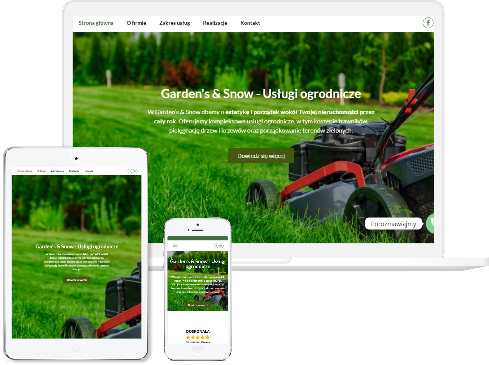Postawiliśmy na wyrazisty, sezonowy charakter grafiki i układu, żeby podkreślić, że firma działa sprawnie niezależnie od pory roku. Sekcje zaprojektowaliśmy tak, aby użytkownik od razu widział pełen zakres usług i mógł szybko przejść do kontaktu, bo w tej branży liczy się dynamika działania. Zadbaliśmy też o czytelność i jasną strukturę, która porządkuje zarówno ofertę letnią, jak i zimową.
