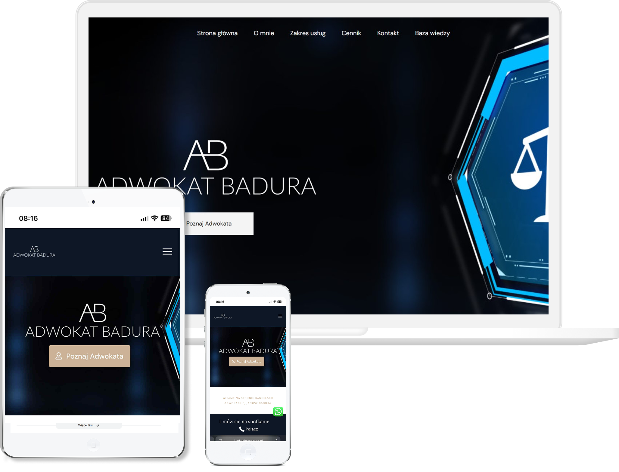 Zdecydowaliśmy się na klarowny, uporządkowany układ, bo w tej branży liczy się przede wszystkim wiarygodność i konkret. Całość uzupełniliśmy wyraźnymi sekcjami usług oraz prostą ścieżką kontaktu, żeby ułatwić użytkownikowi szybkie podjęcie decyzji.