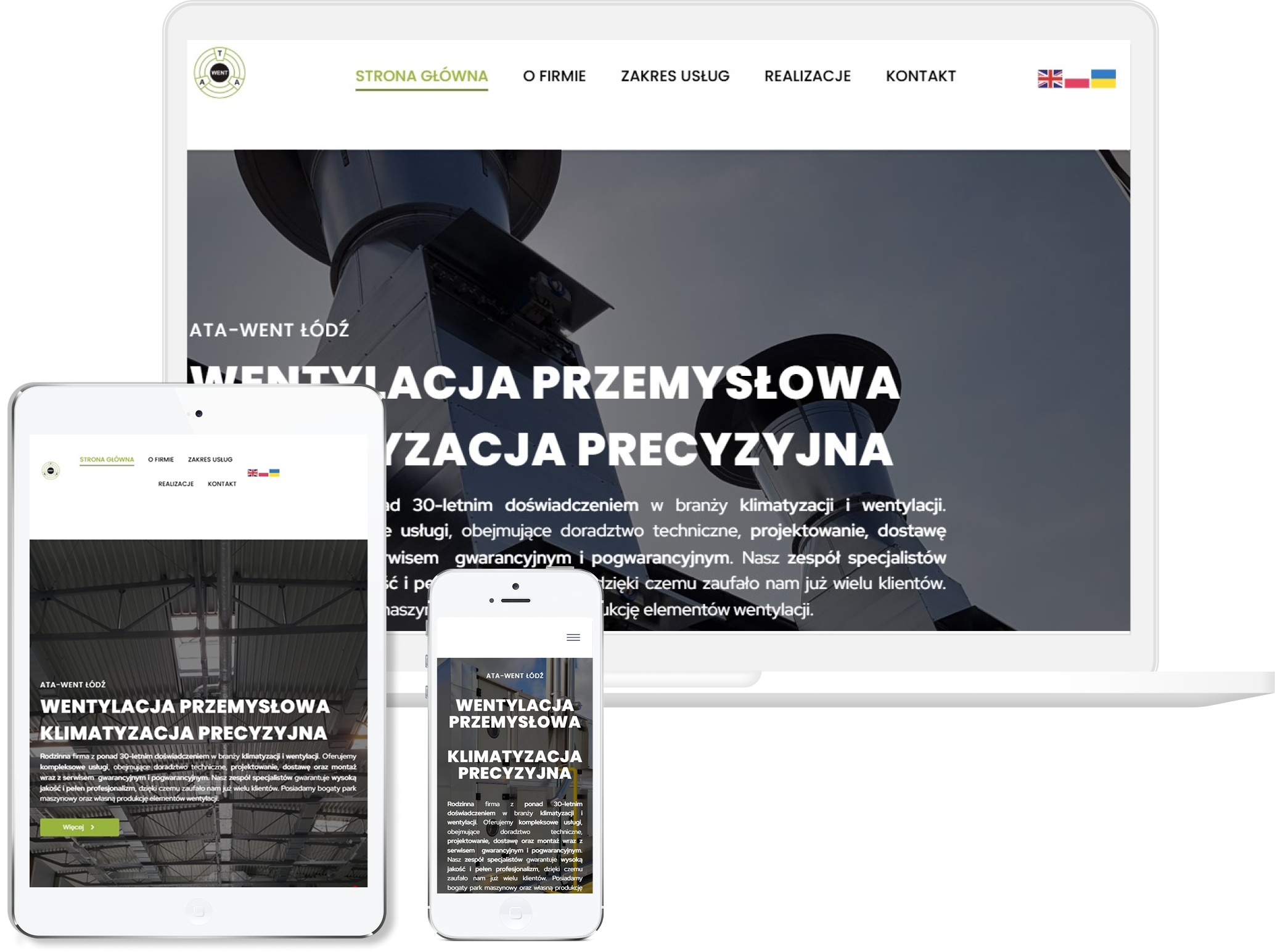 W tym projekcie zależało nam na stworzeniu strony, która od razu kojarzy się z profesjonalnymi instalacjami, precyzją i komfortem użytkownika. Postawiliśmy na chłodną, uporządkowaną estetykę, która naturalnie współgra z branżą klimatyzacji i wentylacji, a jednocześnie pozwala zachować pełną czytelność treści. Cały układ przygotowaliśmy tak, aby klient mógł szybko sprawdzić zakres usług — montaż, serwis, przeglądy — oraz zobaczyć realizacje potwierdzające jakość pracy. Duży nacisk położyliśmy na jasne komunikaty i wyraźne CTA, bo w tej branży liczy się szybkie podjęcie decyzji i możliwość natychmiastowego kontaktu. Stronę dopracowaliśmy pod kątem mobilnym, żeby równie wygodnie działała na telefonie, gdzie większość użytkowników szuka wykonawcy „na już”. Finalnie powstała nowoczesna, przejrzysta witryna, która prezentuje firmę jako rzetelnego instalatora zapewniającego komfort, chłód i pewność działania przez cały rok.
