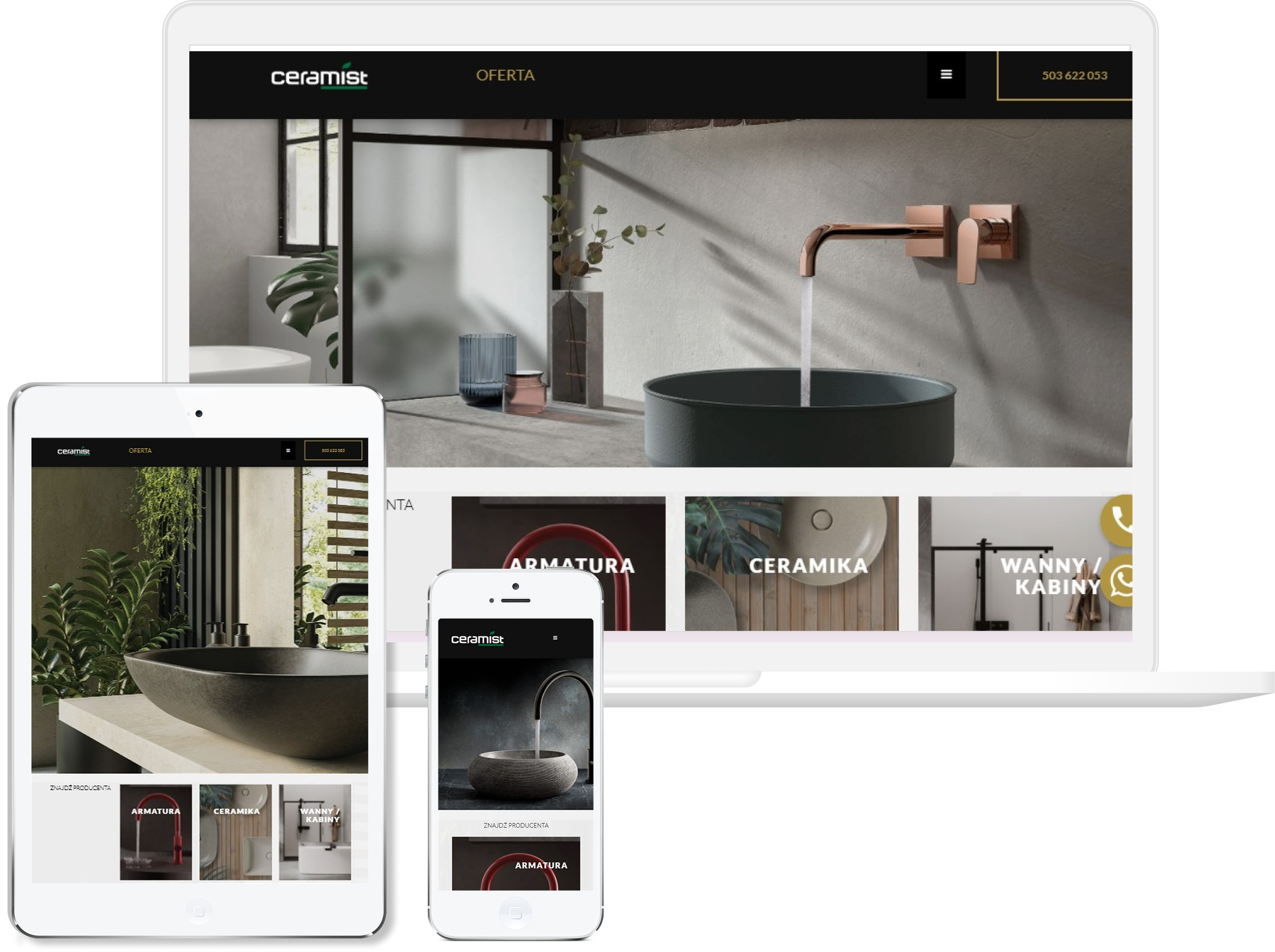 Postawiliśmy na czystą, jasną estetykę, która podkreśla charakter marki i współgra z wizualnym światem ceramiki oraz kamienia. Każdą sekcję ułożyliśmy tak, aby była spokojna, klarowna i dawała przestrzeń zdjęciom, bo to właśnie one najlepiej budują profes