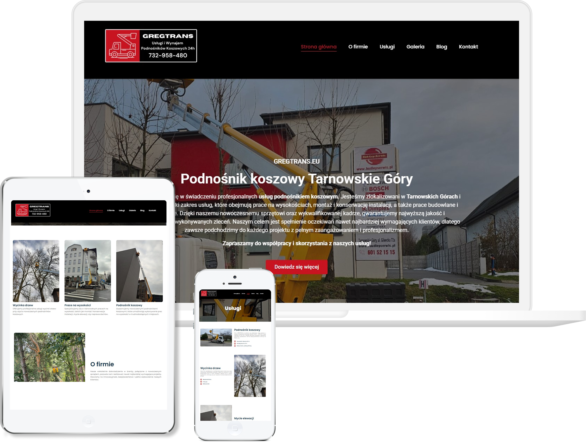 W tego typu branży najważniejsze jest poczucie bezpieczeństwa, solidność i profesjonalizm – dlatego cała realizacja została zbudowana w oparciu o mocne kontrasty, czytelne układy i wyraźne komunikaty kierujące od razu do kontaktu. Projekt powstał od zera, zaczynając od stworzenia jasnej struktury usług, tak aby klient z poziomu jednej strony wiedział, co firma wykonuje: prace wysokościowe, wycinki, montaż reklam, prace przy elewacjach i instalacjach. Każda sekcja została przygotowana w sposób maksymalnie przejrzysty, bez przeładowania zbędnymi elementami – pełna konkretów, bez lania wody. Wdrożono również dedykowane menu z responsywnym układem, w którym na desktopie wszystko jest czytelne i statyczne, a na telefonie pojawia się solidny hamburger z dopracowanym rozwijaniem. Dzięki temu strona działa intuicyjnie niezależnie od urządzenia.