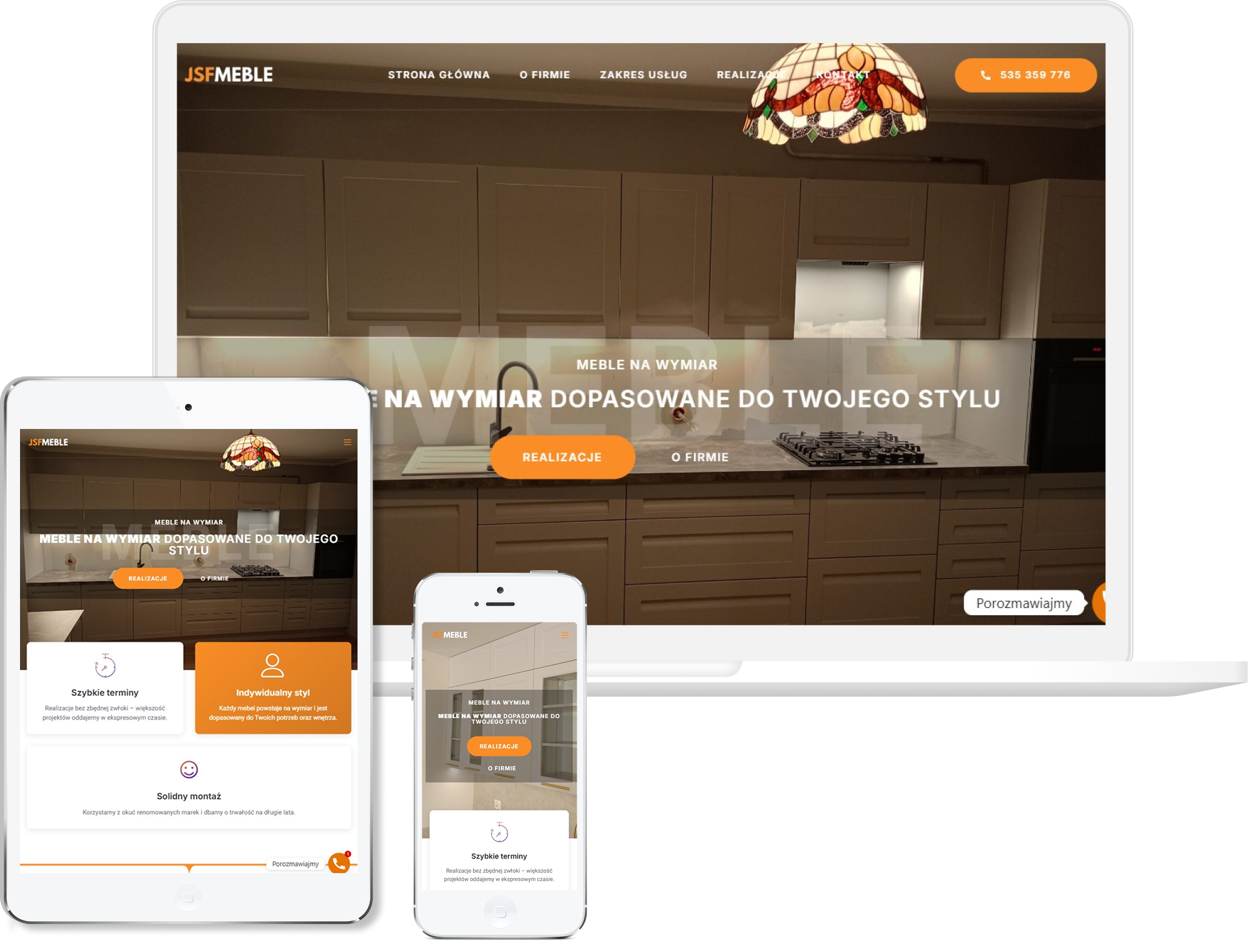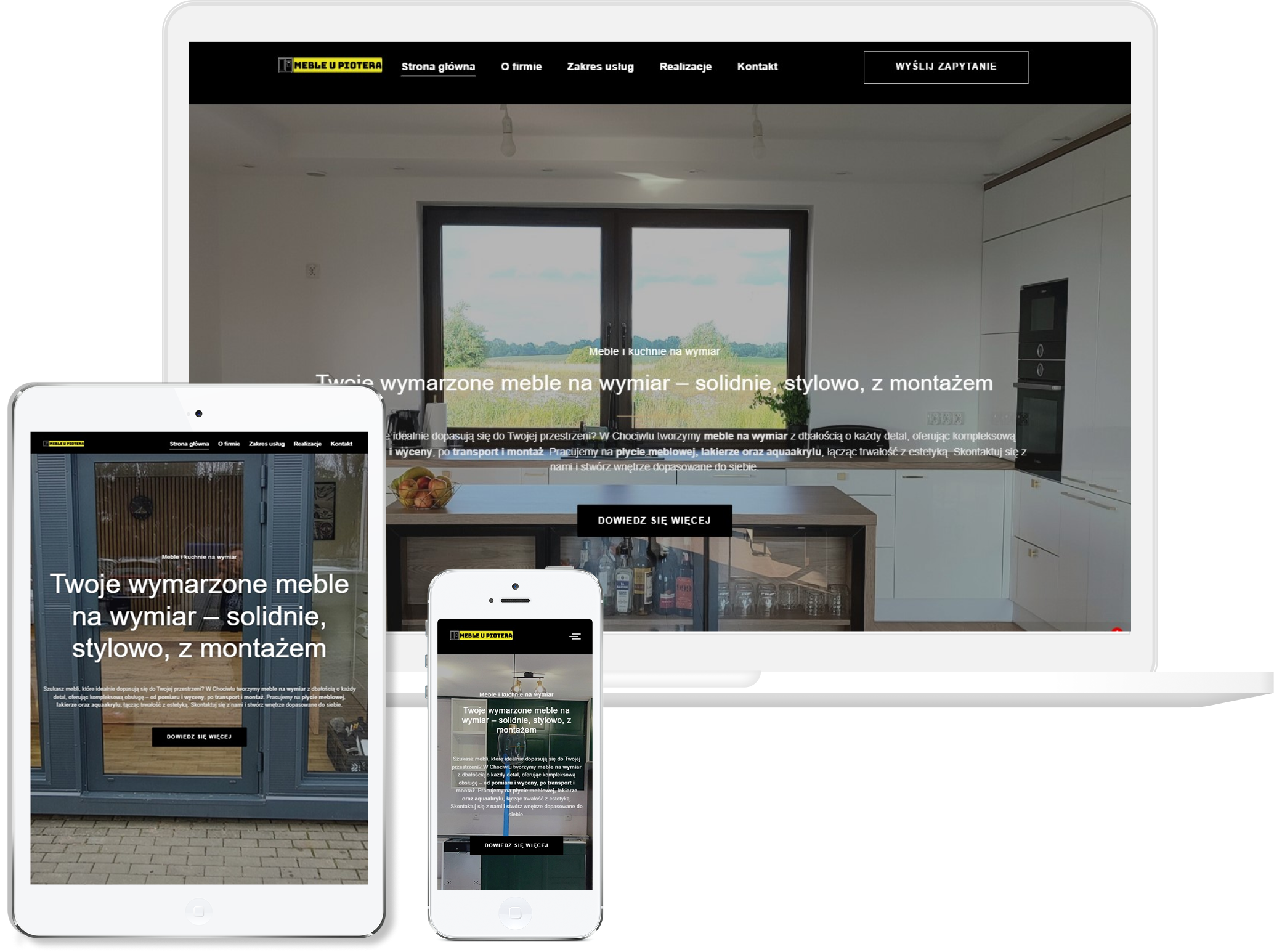 Projekt tej strony przygotowaliśmy tak, aby od pierwszego wrażenia budować skojarzenie z solidnym rzemiosłem i indywidualnym podejściem do każdego projektu. Postawiliśmy na stonowaną, elegancką estetykę, która współgra z branżą meblarską i pozwala skupić uwagę na zdjęciach prezentujących realizacje. Układ zaprojektowaliśmy klarownie, tak aby użytkownik mógł szybko przejść przez główne sekcje — kuchnie, zabudowy, garderoby — i od razu zobaczyć jakość wykonania. Duży nacisk położyliśmy na portfolio, bo w tej branży to właśnie ono decyduje o zaufaniu i wyborze wykonawcy. Strona została dopracowana pod kątem mobilnym, aby wygodnie przeglądało się ją również na telefonach, gdzie wielu klientów szuka inspiracji. Finalnie powstała witryna, która łączy prostotę, estetykę i funkcjonalność, prezentując firmę jako rzetelnego wykonawcę mebli tworzonych na wymiar z dbałością o każdy detal.