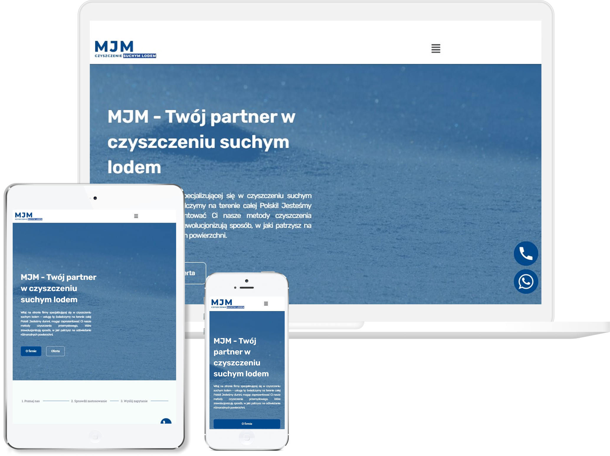 Układ opracowaliśmy tak, aby użytkownik mógł szybko zrozumieć, na czym polega metoda, gdzie się ją stosuje i jakie przewagi daje względem tradycyjnych sposobów czyszczenia. Duży nacisk położyliśmy na sekcje usług i realne zastosowania, bo to one najskuteczniej przemawiają do świadomości klienta biznesowego. Całość została dopracowana pod kątem responsywności oraz szybkości działania, co jest szczególnie ważne dla firm przeglądających ofertę w terenie. Finalnie stworzyliśmy stronę, która prezentuje markę jako specjalistów od zaawansowanych technologii czyszczenia i daje użytkownikowi pełny, merytoryczny obraz możliwości tej metody.