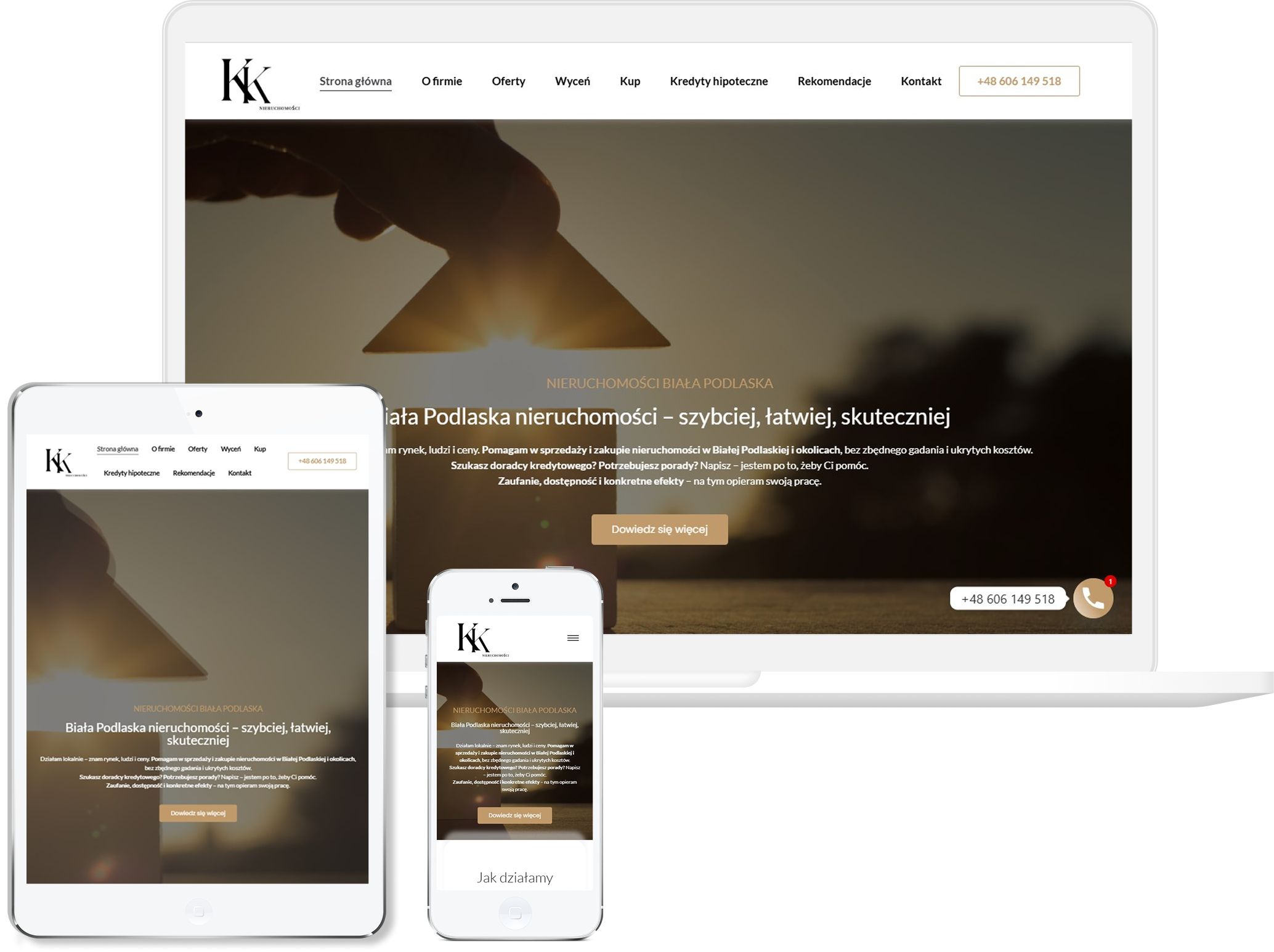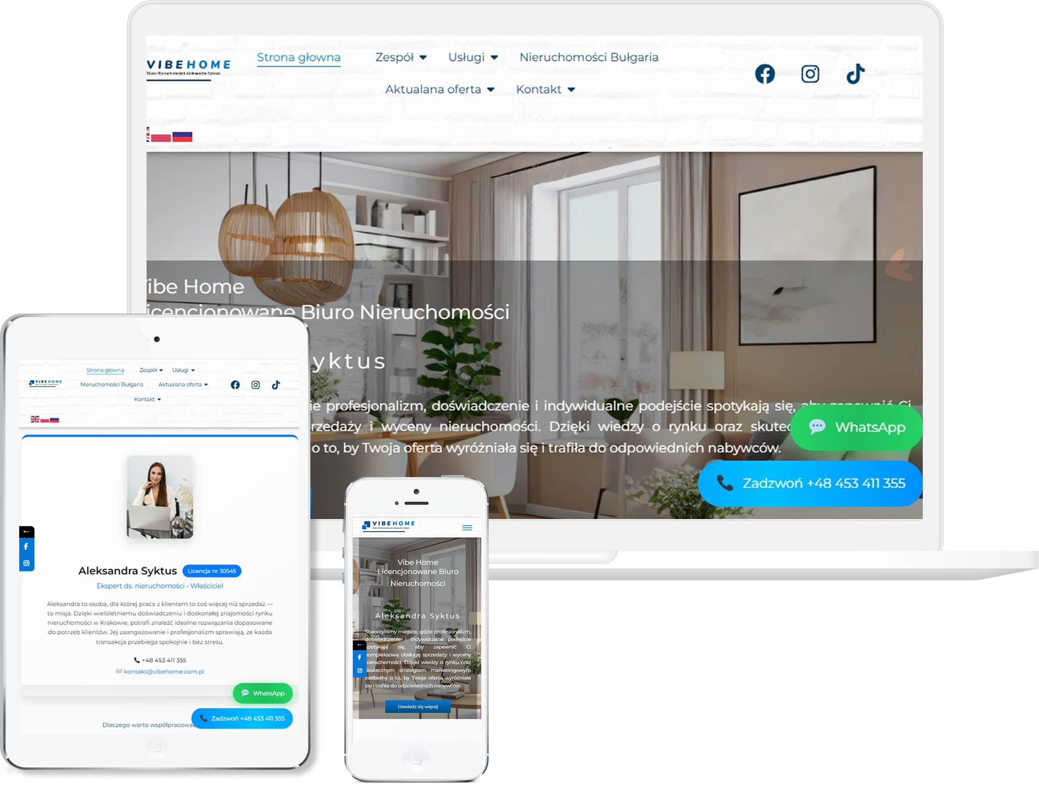 Strona jest w pełni responsywna, szybka i zoptymalizowana pod urządzenia mobilne, co w branży nieruchomości ma kluczowe znaczenie dla wygody klientów. Wprowadzono profesjonalne treści, zdjęcia, formularze kontaktowe i sekcje wizerunkowe, które wzmacniają zaufanie do marki. Projekt został przygotowany zgodnie z zasadami SEO, tak aby oferty mogły wyświetlać się szerzej i skutecznie przyciągać potencjalnych kupujących oraz najemców.