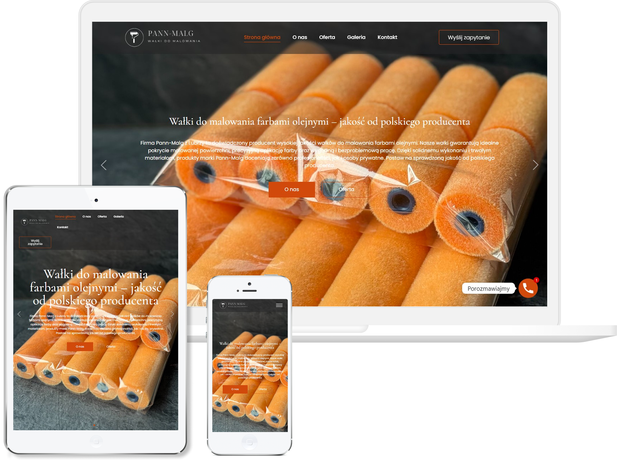 Postawiliśmy na techniczną, stonowaną estetykę, która podkreśla charakter produkcji i od razu buduje skojarzenie z profesjonalnym zapleczem technologicznym. Cały układ opracowaliśmy tak, aby użytkownik szybko dotarł do informacji o typach wałków, zastosowaniach oraz możliwościach indywidualnych realizacji. Zadbaliśmy też o podkreślenie doświadczenia i procesu wytwarzania, bo w tej branży to one budują realną przewagę konkurencyjną.