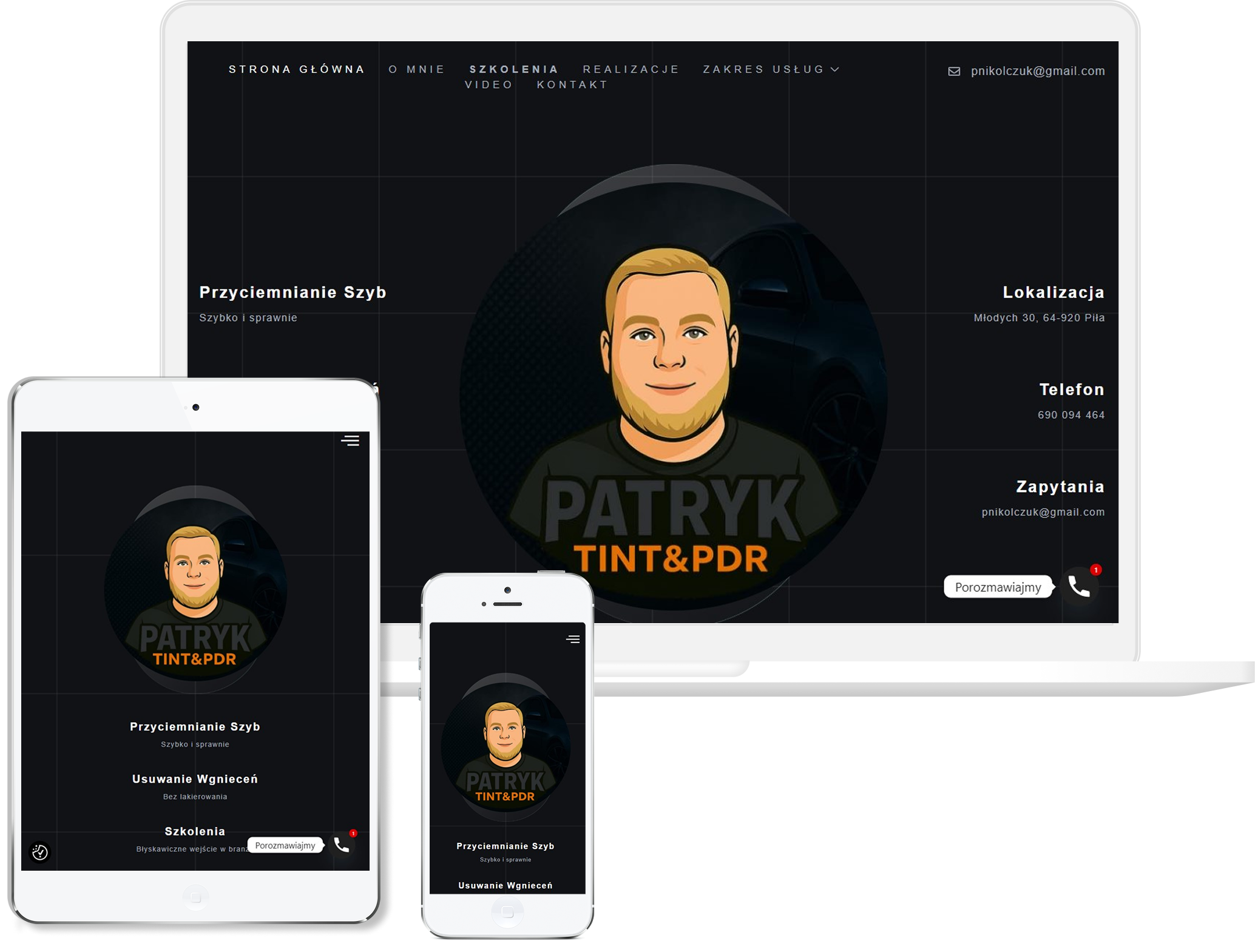 Strona patryktintpdr.pl została przez nas zaprojektowana jako profesjonalna prezentacja usług przyciemniania szyb oraz specjalistycznych szkoleń prowadzonych przez doświadczonego trenera. Postawiliśmy na nowoczesną, mocniejszą stylistykę, która dobrze oddaje klimat branży automotive i od razu podkreśla techniczny charakter usług. Układ strony zbudowaliśmy tak, aby użytkownik natychmiast znalazł informacje o ofercie, terminach szkoleń i możliwościach rezerwacji, bez zbędnego klikania. Sekcje poświęcone szkoleniom wyeksponowaliśmy szczególnie mocno, bo to one budują ekspercki wizerunek i pokazują realne kompetencje prowadzącego.