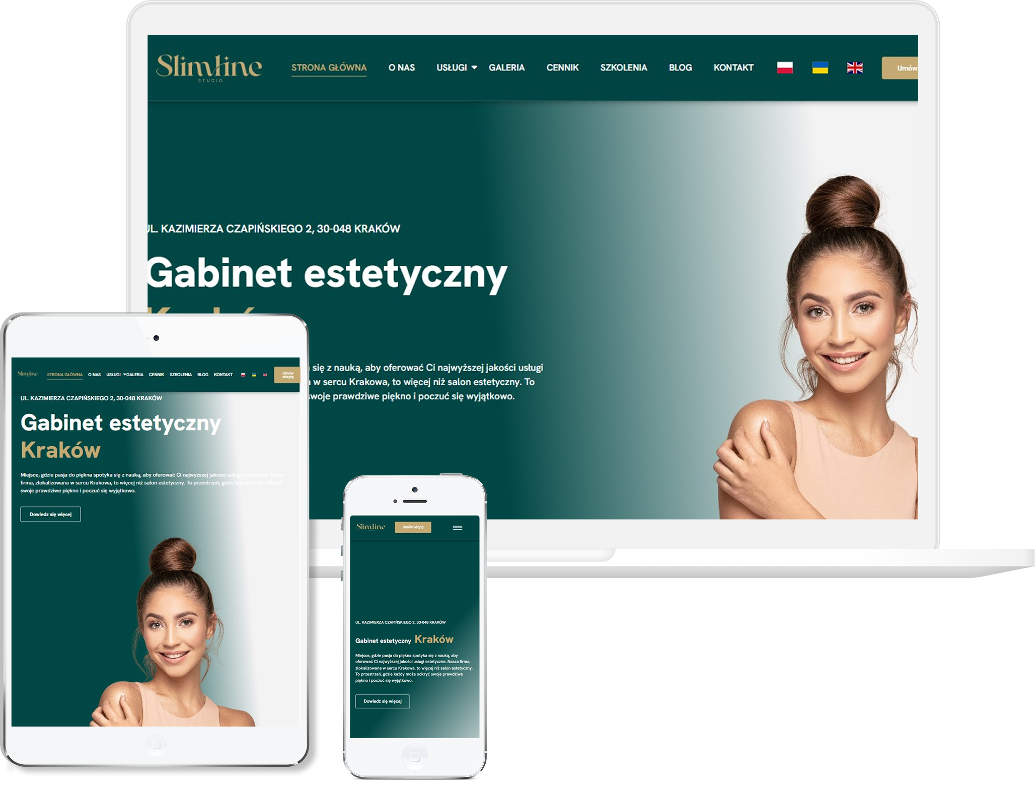 Strona slimlinestudio.pl została przez nas zaprojektowana jako nowoczesna, lekka i kobieca wizytówka studia zajmującego się modelowaniem sylwetki oraz zabiegami poprawiającymi wygląd i samopoczucie. Postawiliśmy na jasną, harmonijną estetykę, która buduje atmosferę relaksu i profesjonalnej opieki, bo właśnie na takim doświadczeniu zależało właścicielom. Układ strony ułożyliśmy tak, aby klientka mogła szybko znaleźć informacje o zabiegach, cenach i możliwościach umówienia wizyty, bez konieczności przeklikiwania się przez długie treści.