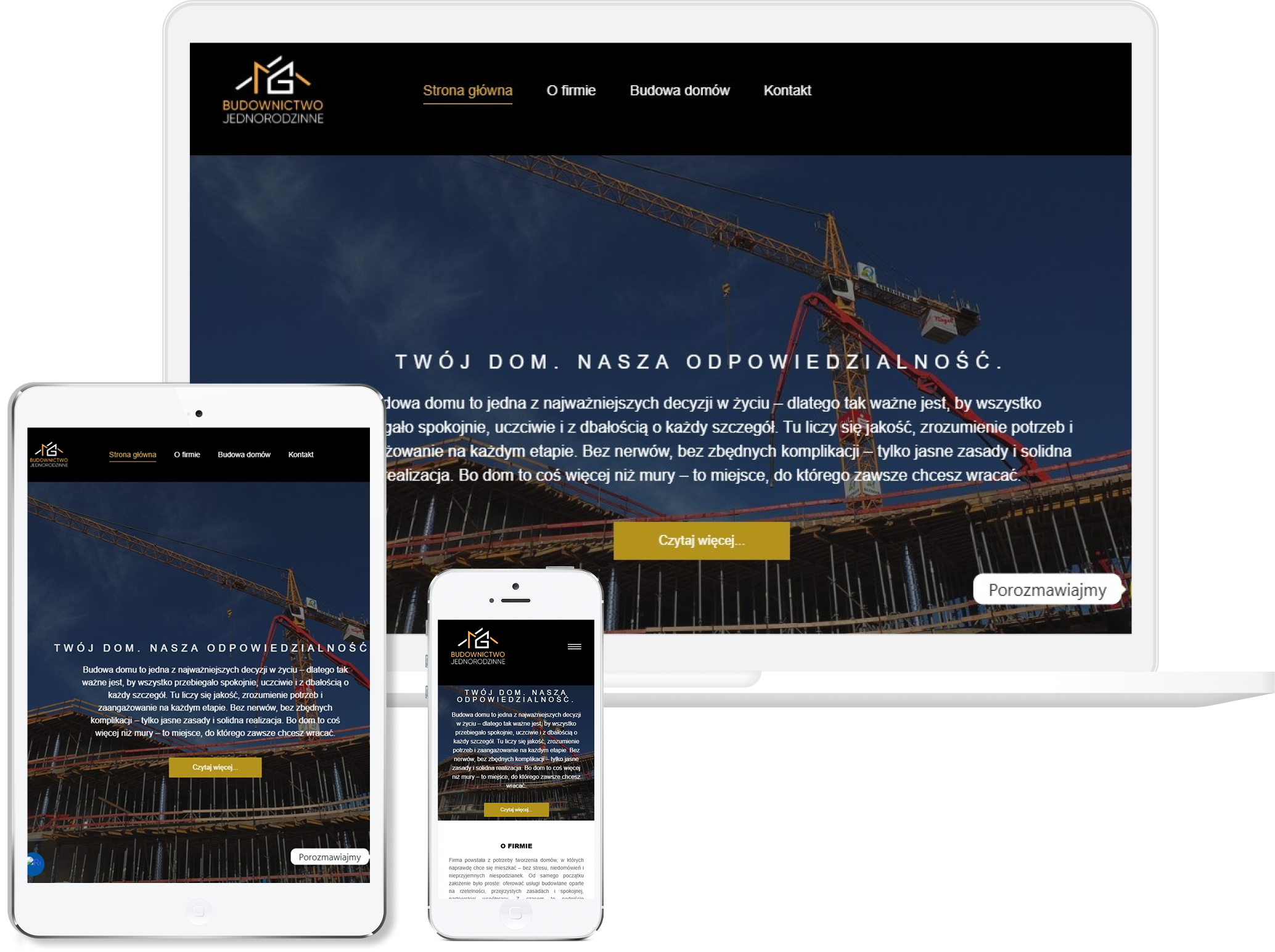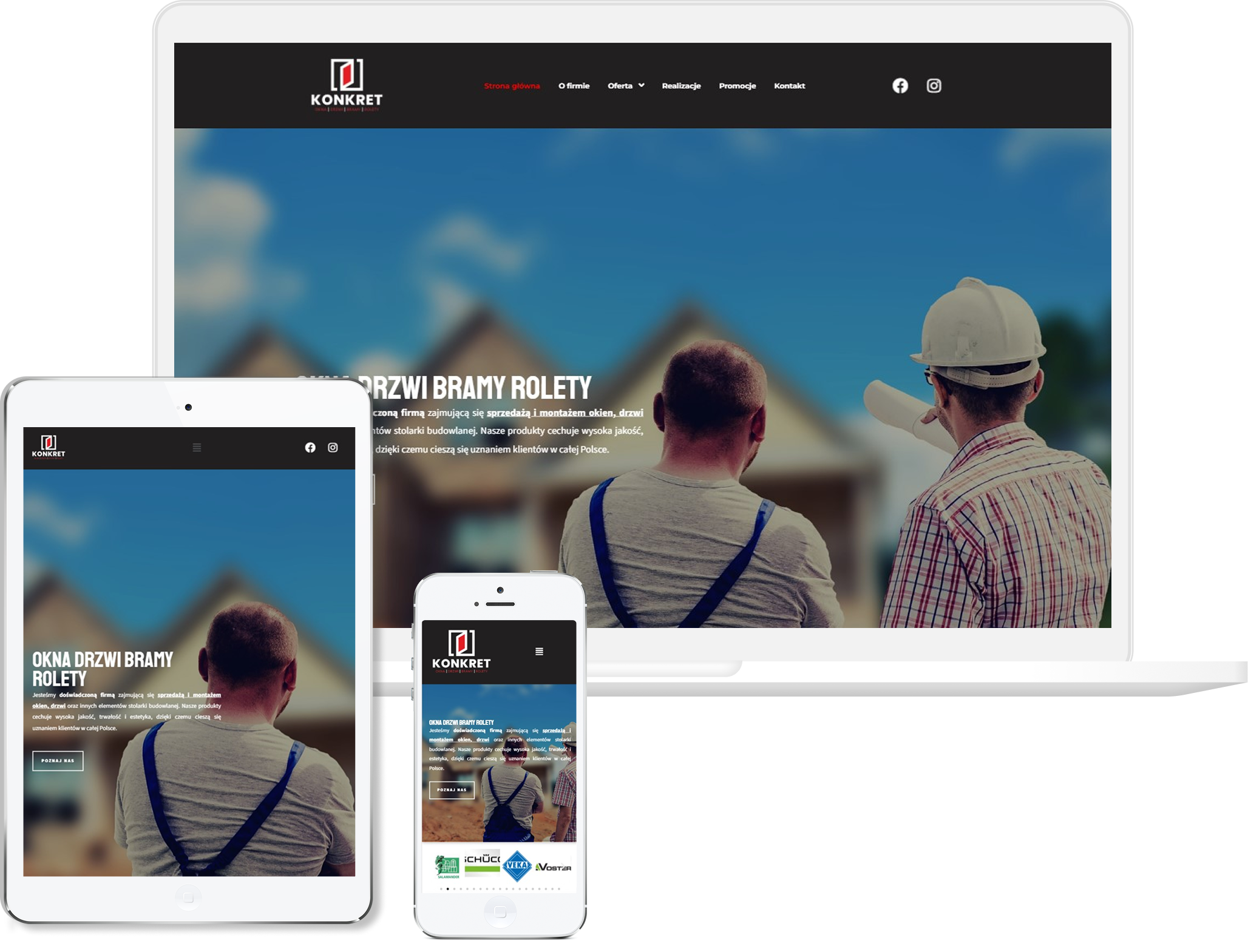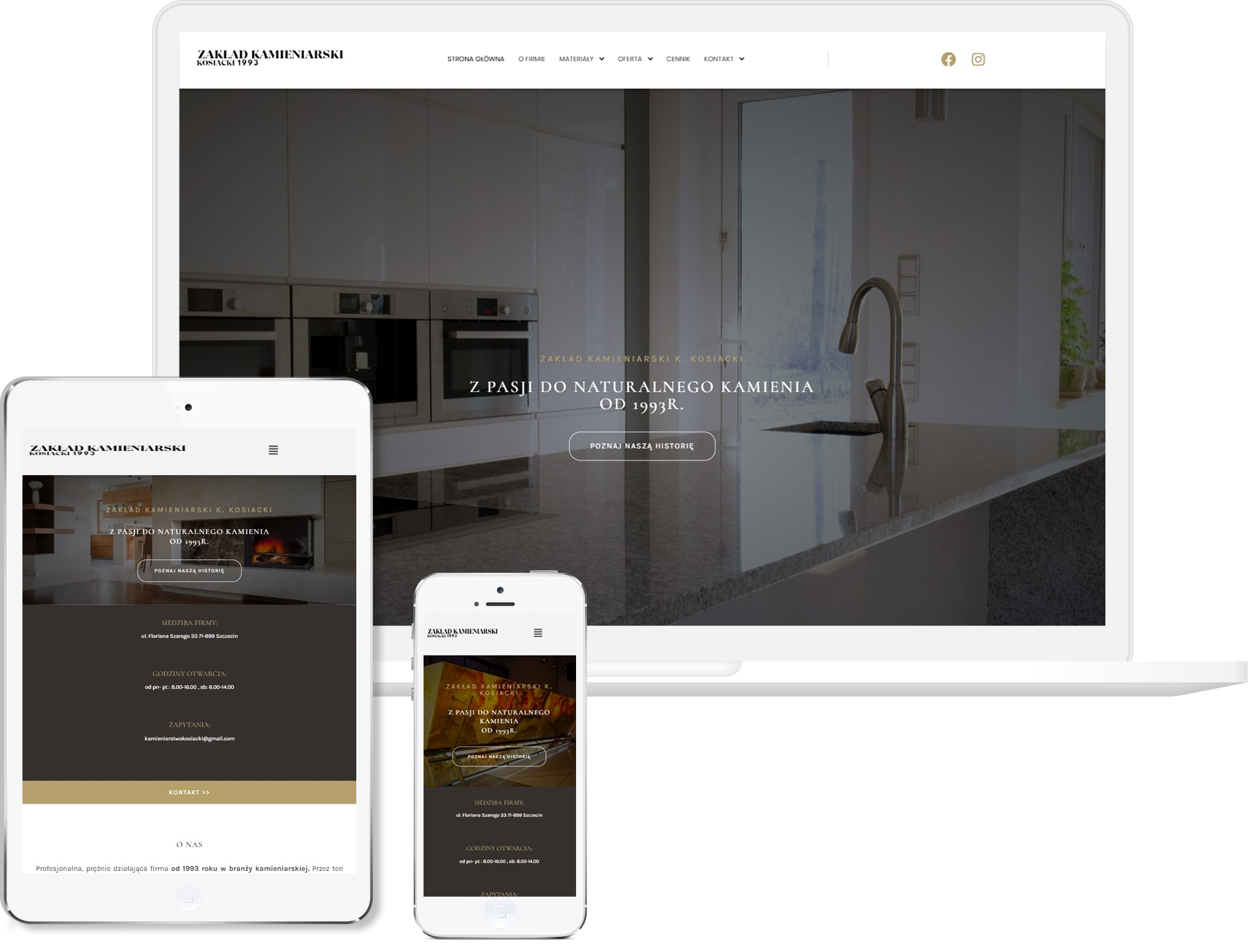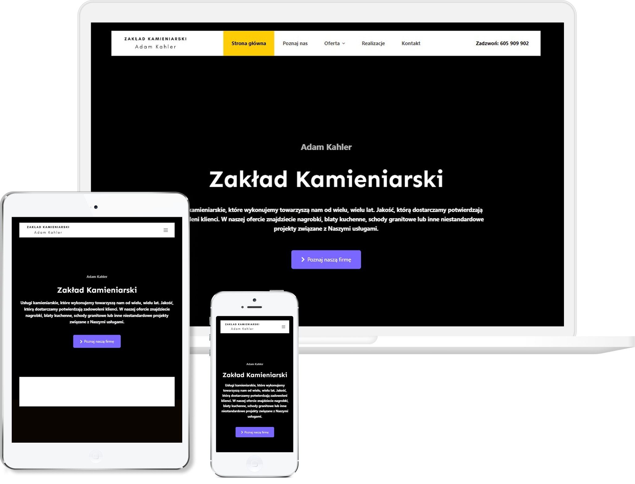 Postawiliśmy na proste, stonowane rozwiązania wizualne, bo tu najważniejsza jest jakość realizacji, a nie przesadna oprawa graficzna. Układ uporządkowaliśmy tak, aby klient mógł szybko przejrzeć przykładowe projekty, poznać zakres usług i bez problemu skontaktować się z wykonawcą. Zadbaliśmy o czytelne rozmieszczenie zdjęć, bo to one najlepiej pokazują rzemiosło i precyzję wykonania. Strona została zoptymalizowana pod urządzenia mobilne, żeby działała sprawnie nawet w terenie, gdzie wiele osób szuka wykonawców.