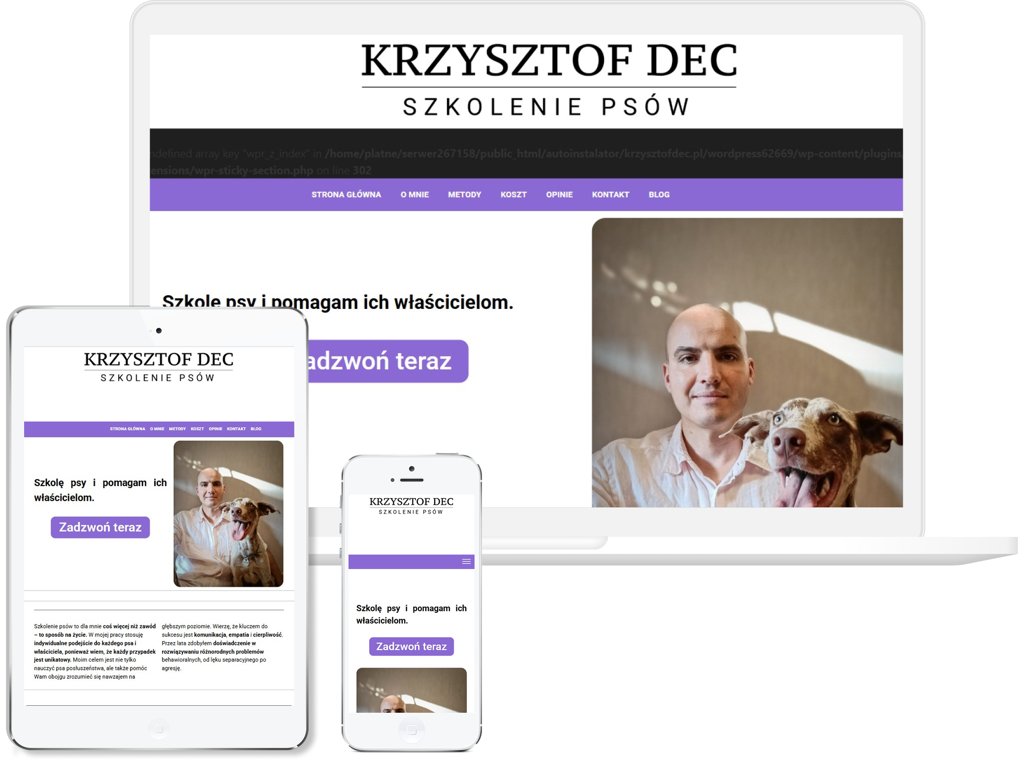 W tym projekcie skupiliśmy się na stworzeniu strony, która od pierwszej chwili budzi zaufanie i pokazuje, że behawiorysta pracuje w oparciu o wiedzę, doświadczenie i realne zrozumienie psiej psychiki. Postawiliśmy na ciepłą, naturalną estetykę, która podkreśla bliskość człowieka i zwierzęcia, bez zbędnych agresywnych akcentów. Układ zaprojektowaliśmy tak, aby użytkownik mógł szybko znaleźć najważniejsze informacje — zakres pomocy, metody pracy, konsultacje i wizyty domowe. Ogromne znaczenie miała również część edukacyjna i opis podejścia, bo w tej branży klienci chcą wiedzieć, komu powierzają swojego psa i jakie efekty mogą osiągnąć. Strona została dopracowana pod kątem wygody przeglądania na urządzeniach mobilnych, co jest ważne dla właścicieli psów szukających szybkiej pomocy. Finalnie powstała witryna pełna spokoju i merytoryki, która prezentuje behawiorystę jako profesjonalnego przewodnika w rozwiązywaniu trudnych psich zachowań.