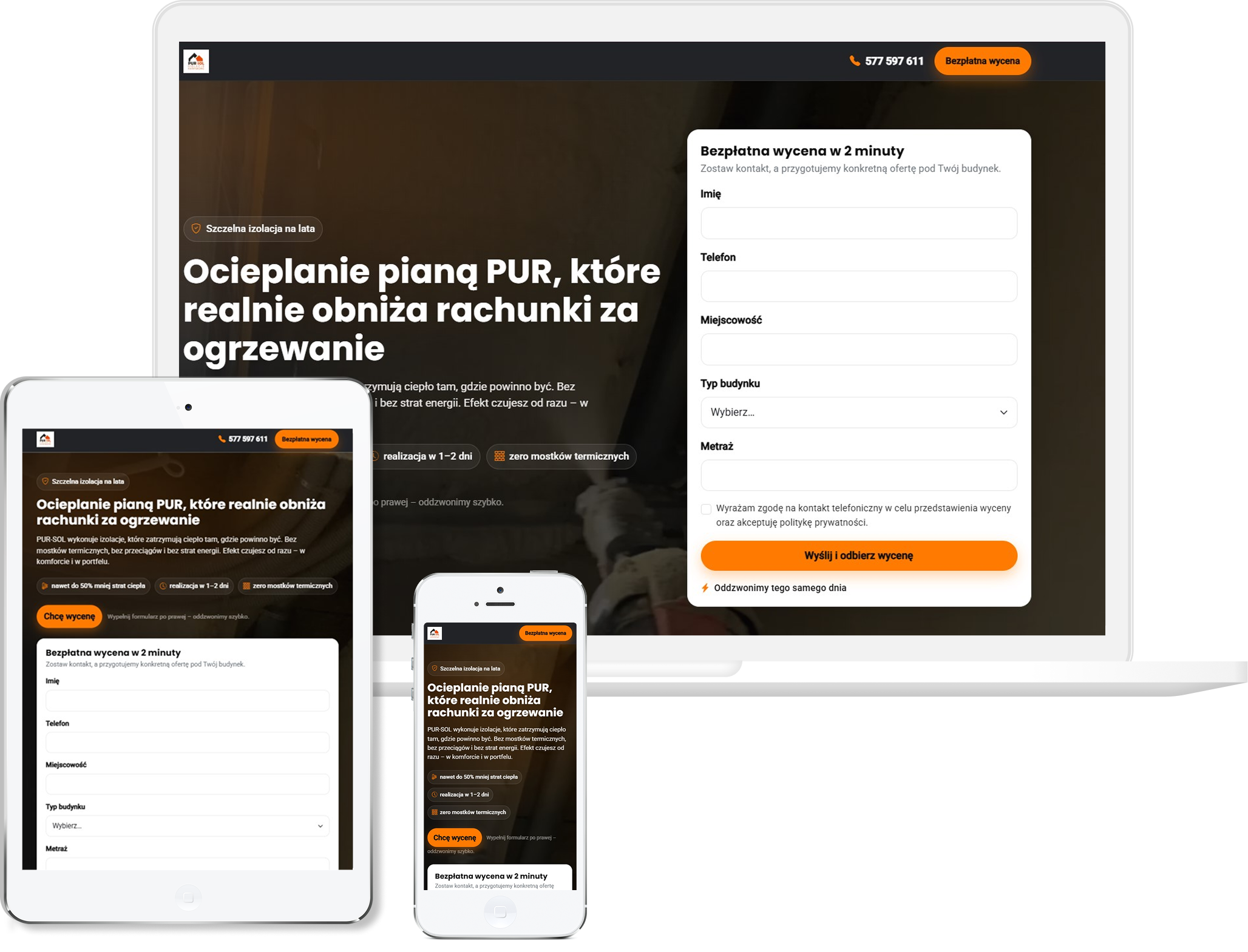 Landing page został przygotowany jako przykład strony docelowej wykorzystywanej w kampaniach Google Ads. Został zaprojektowany w taki sposób, aby maksymalnie ułatwić użytkownikowi wysłanie zapytania: szybkie ładowanie, jasny układ, wyraźne CTA i formularz kontaktowy umieszczony w widocznym miejscu. Strona jest w pełni responsywna i zoptymalizowana pod konwersję, dzięki czemu świetnie nadaje się jako wzór dla klientów uruchamiających kampanie nastawione na pozyskiwanie leadów.