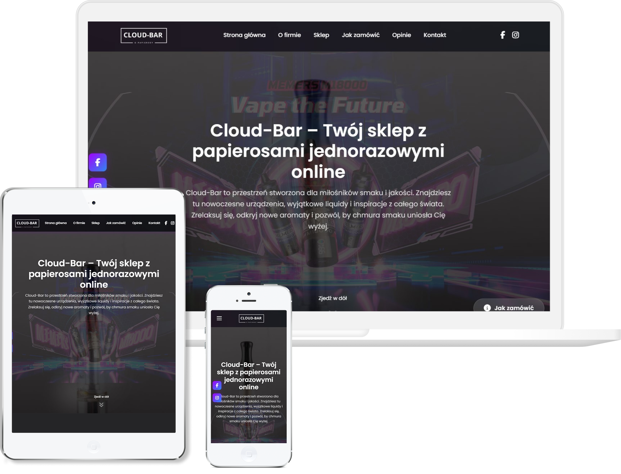 Projekt tej strony przygotowaliśmy tak, aby maksymalnie uprościć proces zamawiania e-papierosów i akcesoriów, zgodnie z oczekiwaniem klienta, który chciał kierować wszystkie zamówienia bezpośrednio na WhatsApp. Zamiast klasycznego sklepu wdrożyliśmy układ nastawiony na szybkie przeglądanie produktów i natychmiastowy kontakt, dzięki czemu użytkownik od razu wie, jak złożyć zamówienie i nie musi przechodzić przez skomplikowaną ścieżkę zakupową. Postawiliśmy na intensywną, nowoczesną estetykę, która dobrze oddaje klimat branży vape i przyciąga wzrok mocnymi kolorami oraz wyraźnymi grafikami. Strona została zbudowana tak, aby na telefonach działała wyjątkowo wygodnie, bo to właśnie tam użytkownicy najczęściej piszą przez WhatsApp. Całość uzupełniliśmy czytelnymi prezentacjami produktów i klarownymi CTA, które prowadzą bezpośrednio do szybkiej rozmowy. Finalnie powstała prosta, dynamiczna witryna, która ułatwia zakupy i w pełni odpowiada specyfice sprzedaży opartej na komunikatorze.