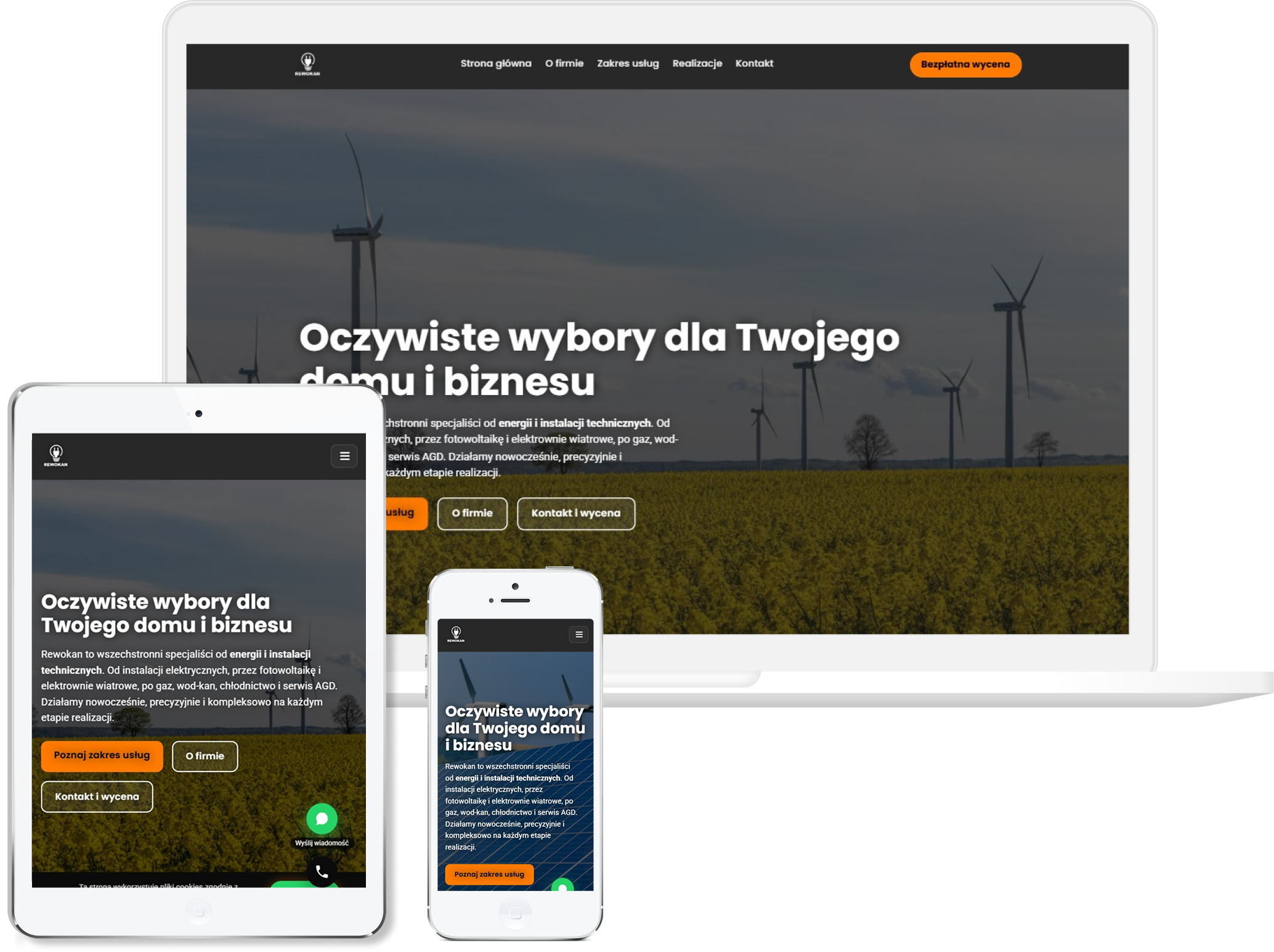 W tym projekcie postawiliśmy na stworzenie strony, która jasno komunikuje specjalizację firmy w zakresie odnawialnych źródeł energii i nowoczesnych instalacji. Zdecydowaliśmy się na czystą, techniczną estetykę, która podkreśla niezawodność oraz precyzję wykonania, jednocześnie dając przestrzeń na prezentację konkretnych rozwiązań — pomp ciepła, fotowoltaiki i wentylacji. Układ zaplanowaliśmy tak, aby użytkownik szybko znalazł informacje o usługach, procesie współpracy i korzyściach wynikających z instalacji OZE, bo właśnie tego najczęściej szukają klienci na tym etapie decyzji. Duży nacisk położyliśmy na przejrzystość, realne realizacje i wyraźne CTA, które prowadzą bezpośrednio do kontaktu. Strona została zoptymalizowana pod urządzenia mobilne, aby potencjalni klienci mogli wygodnie przeglądać ofertę w dowolnym miejscu. Finalnie powstała nowoczesna, profesjonalna witryna, która buduje wizerunek firmy jako solidnego wykonawcy instalacji OZE z kompleksowym podejściem.