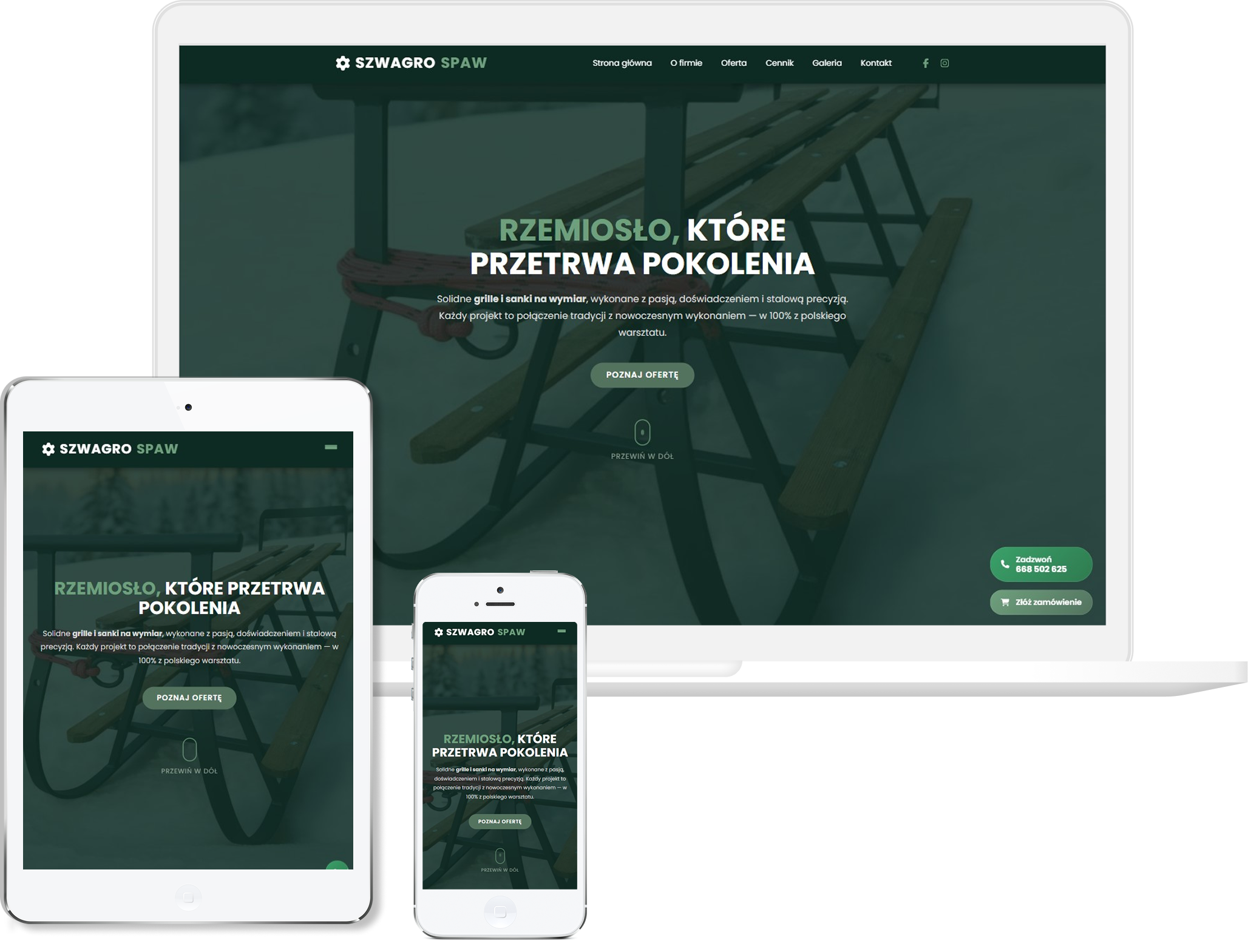 Estetyka strony, choć prosta, odzwierciedla industrialny charakter działalności, co daje spójne wrażenie rzemiosła i fachowości. Przykładowe zdjęcia produktów i warsztatu pokazują, że to nie masówka, tylko praca z uwagą na detale — co przyciąga klientów, którzy szukają jakości i trwałości. Strona pokazuje, że SzwagroSpaw to nie tylko producent — to marka z charakterem, która stawia na rękodzieło, polską stal i uczciwą produkcję.