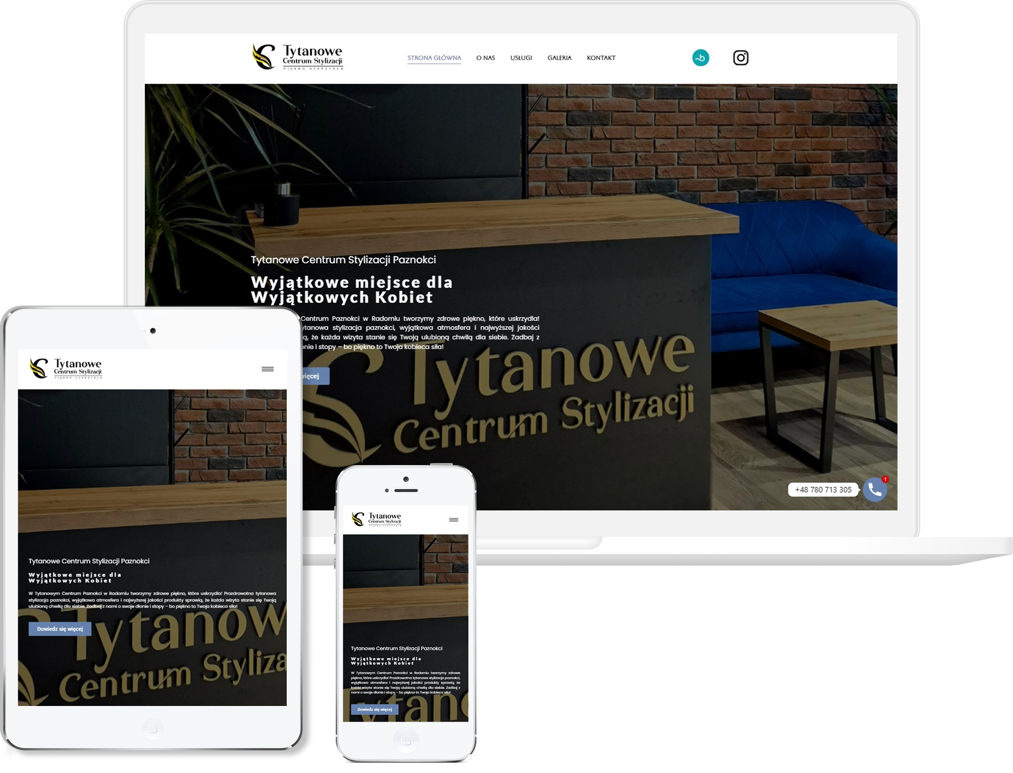 Tytanowe Centrum Stylizacji zachwyca od pierwszego kliknięcia — już strona główna obiecuje, że to miejsce, gdzie piękno idzie w parze ze zdrowiem i bezpieczeństwem. Prezentacja oferty — manicure tytanowy, pedicure kwasowy, pedicure hybrydowy — jasno pokazuje, co klient może zyskać, a przy tym podkreśla unikalność salonu i jego troskę o komfort każdej kobiety. Nowoczesny design i styl loftowy wnętrza przenikają się z elegancją i profesjonalizmem, dając wrażenie, że to nie przypadkowy salon, lecz przemyślane, designerskie miejsce.